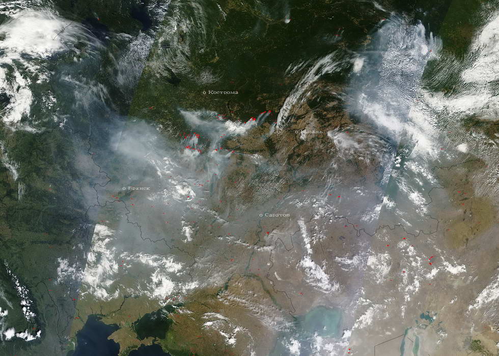 / Карты лесных пожаров в Московской области и европейской части России в августе 2010 года. Спутниковые фотографии лесных пожаров в России летом 2010